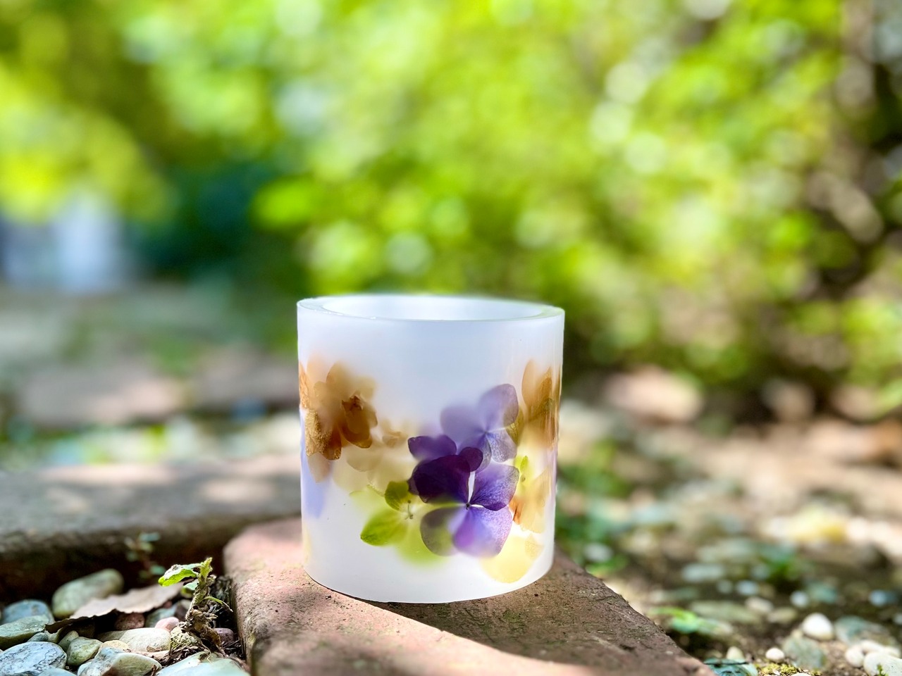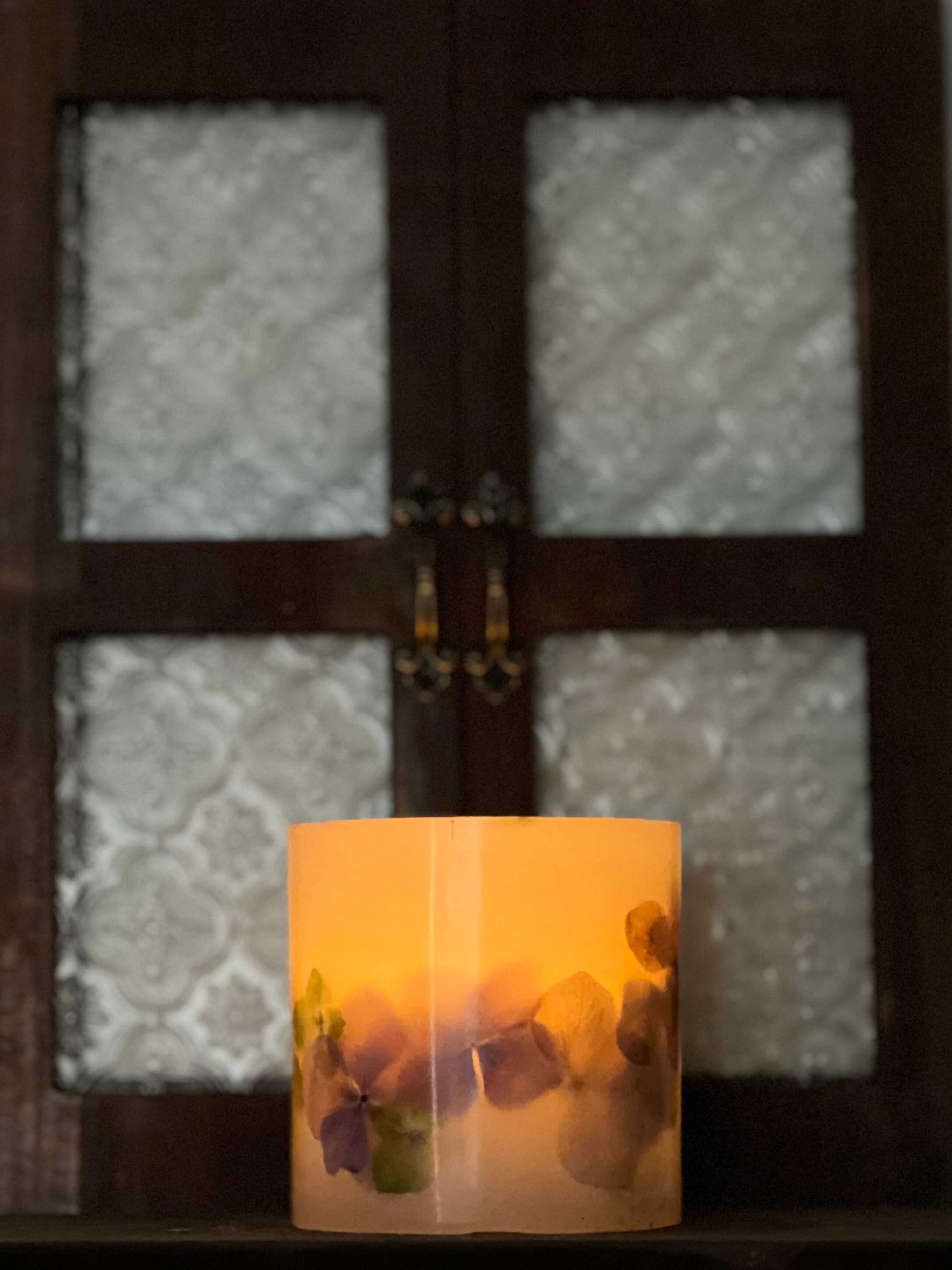 安全性に配慮したLEDキャンドルです。ドライフラワーを使用し、優しく灯ります。