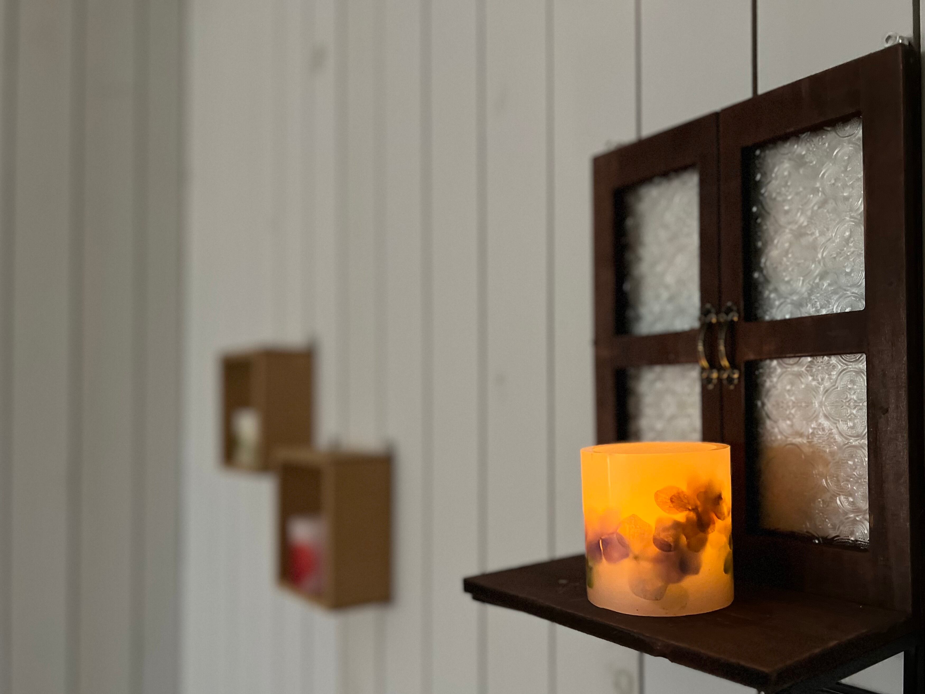光を灯すことで、ドライフラワーの美しいシルエットが映し出され、心を穏やかにする素敵な空間を作り出します。
