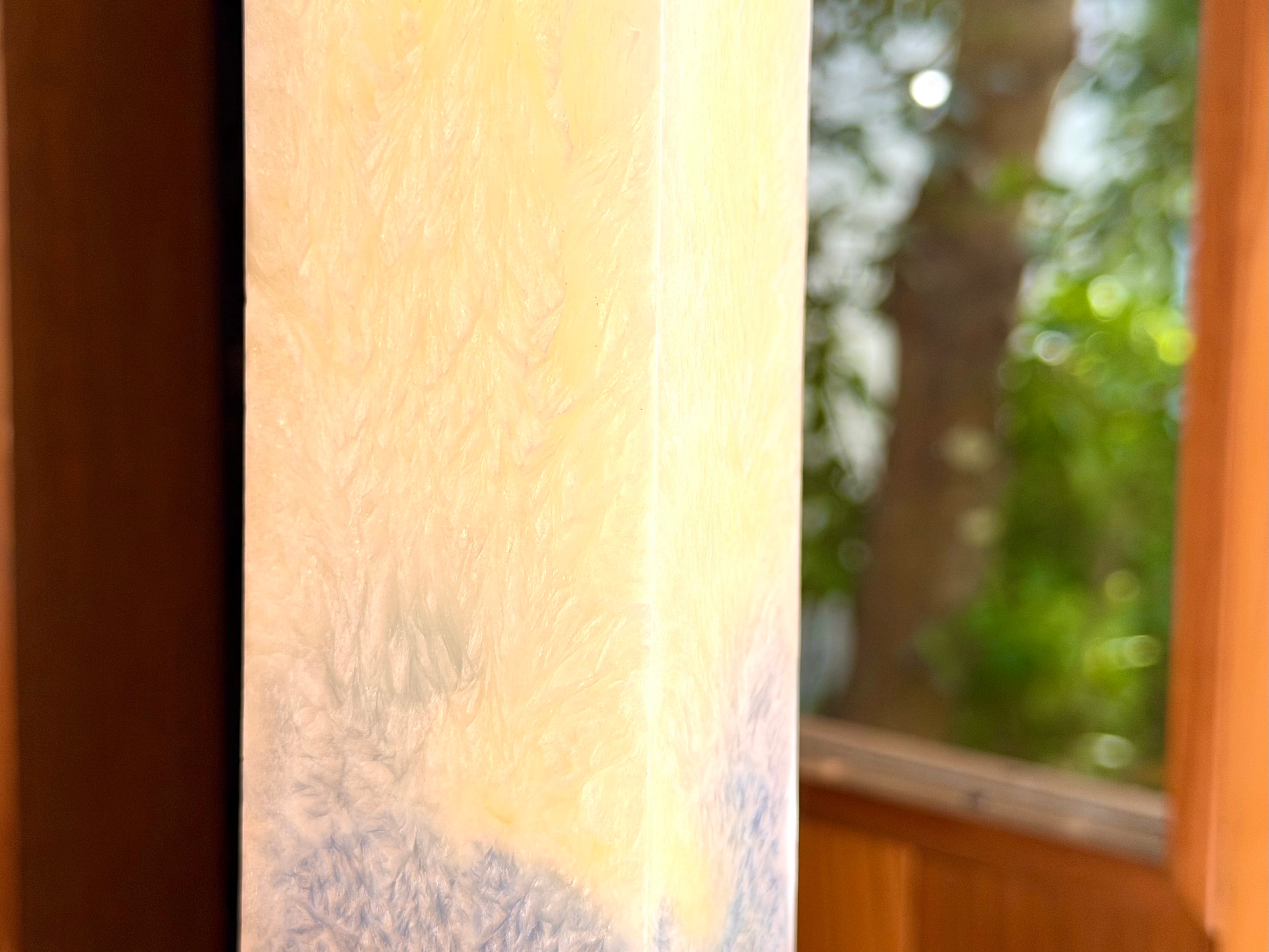 その存在感は、空間に神秘的な彩りを添えます。灯すと光が広がり、透け感が美しく幻想的に形を変えていきます。